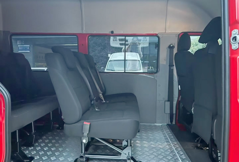 尺寸:整車長5990mm×寬2040mm×高2500mm,軸距3310mm,整備質量約3500-3850kg。載員配置:9座布局(含駕駛員),駕駛室3人+乘坐區(qū)6人,座椅為人體工程學定制款,配備三點式安全帶及7500大卡空調。安全配置:ABS+EBD+ESP、胎壓監(jiān)測、盲區(qū)監(jiān)測(BSD)、ADAS智能駕駛輔助系統(tǒng)。