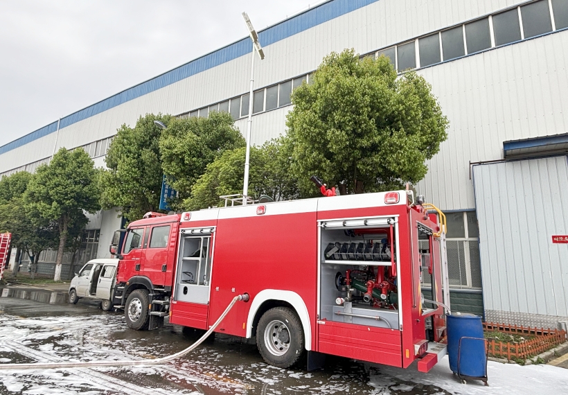 泵浦與噴射性能:消防水泵的流量與壓力是關(guān)鍵指標(biāo),水罐消防車(chē)水泵流量應(yīng)≥30L/s,壓力≥1.0MPa;泡沫消防車(chē)需關(guān)注泡沫混合比例精度(通常為3%或6%),確保滅火劑效能最大化;水炮射程也是重要參數(shù),常規(guī)水炮射程應(yīng)≥50米,舉高噴射消防車(chē)的高空射程需≥80米。