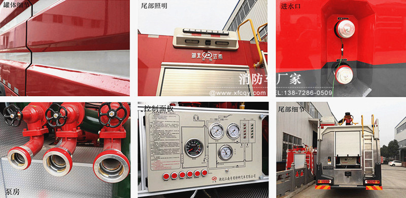 駕駛室頂部前端為長(zhǎng)排警燈,車身后配有24V/60W火場(chǎng)照明燈一只,車輛兩側(cè)上方各配有紅藍(lán)相配的爆閃燈,下方安裝安全標(biāo)志燈,乘員室、器材箱、 泵房?jī)?nèi)均裝有照明燈,加裝有100W警報(bào)器,回轉(zhuǎn)警燈開關(guān)、通訊設(shè)備預(yù)備接口。